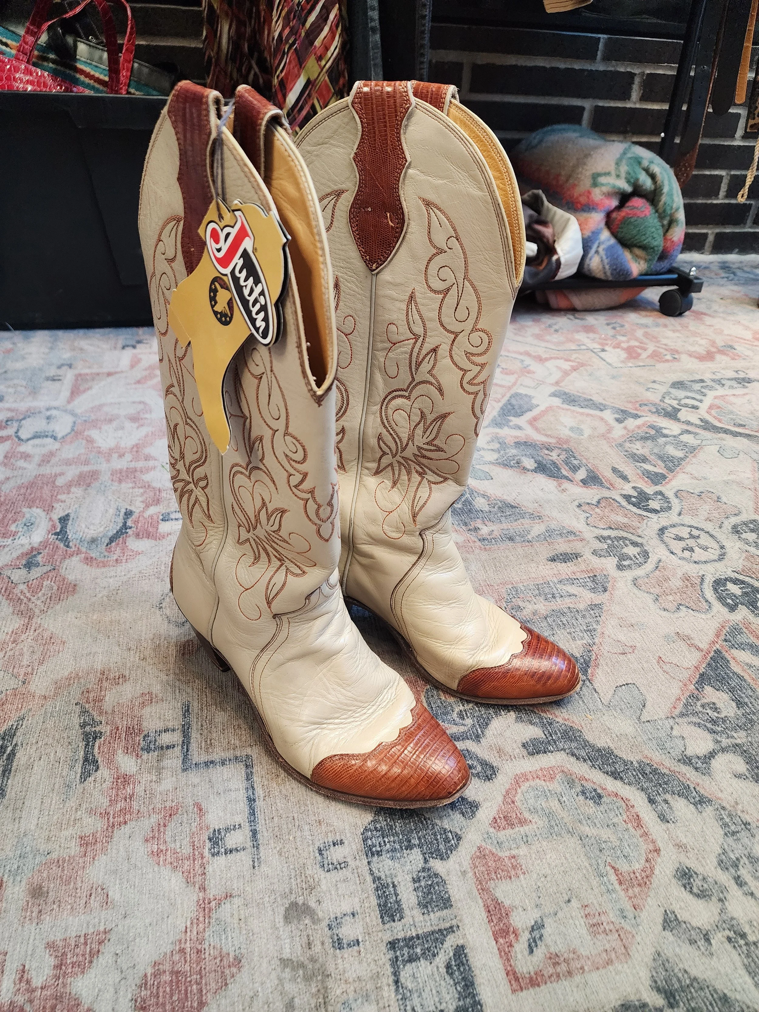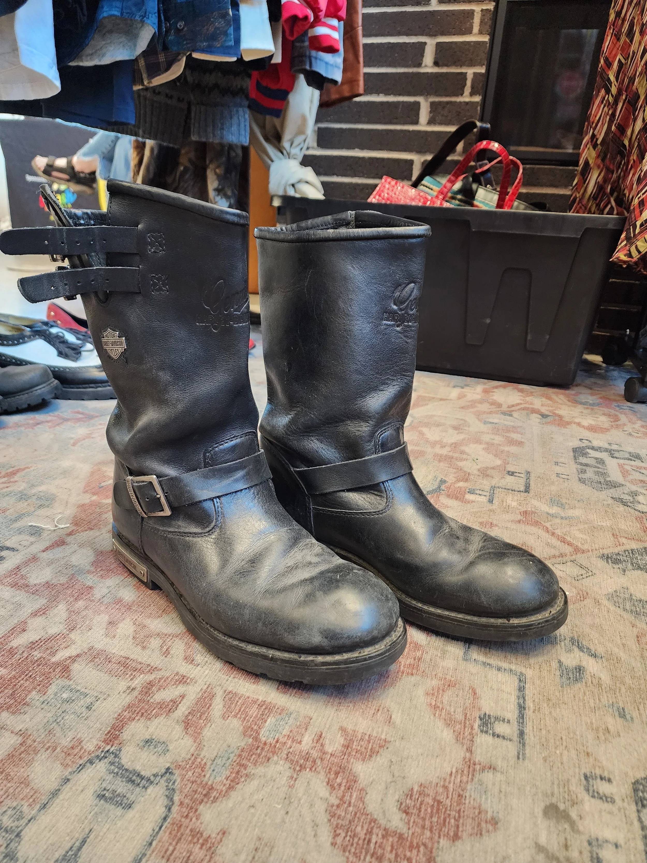 Justin's Cowgirl boots $100.00 Harley Davidson Motorcycle Boots $70.00 Frye Women's Wool Cowgirl Boots $65.00 Vintage Wool Sweater $15.00 T-shirt Grab Bag $40.00 Vintage Woolrich Vest $65.00 Canvas Jacket $25.00